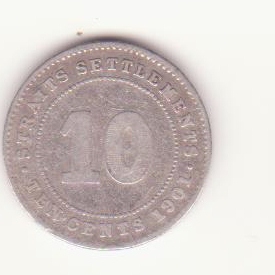 Settlements Queen Victoria 50 cents silver coin dated year 1890H (one of the